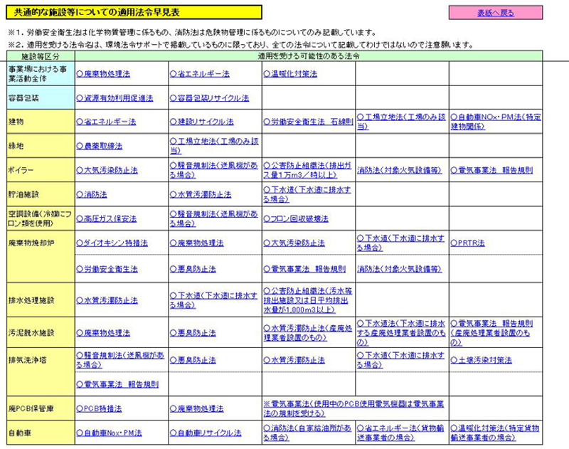 | ■法適用チェック表 | 法令の適用を受けるか否かを簡単にチェックできます。 |