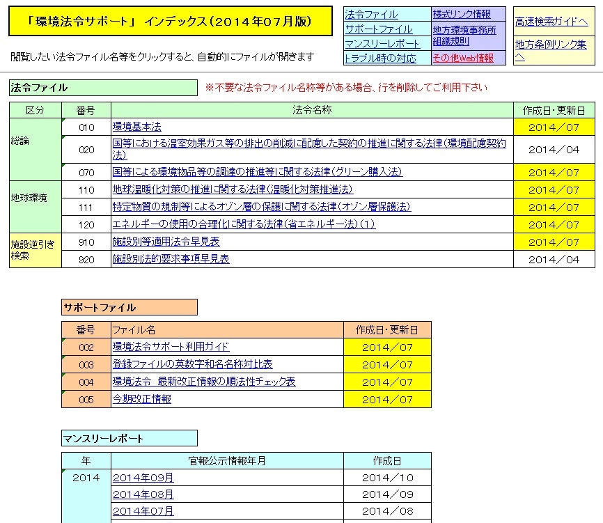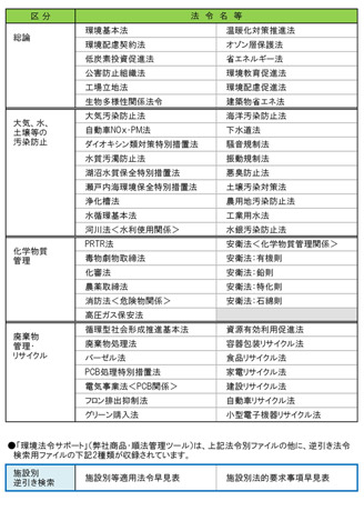 環境法令サポートは、このようなお悩み・心配に的確に対応できる、環境管理の実務担当者のための画期的なツールです。ISO14001認証取得事業所や、簡易な環境マネジメントシステム構築事業所、環境省エコアクション21対応事業所など、いずれの事業所の方にもご満足いただけるでしょう。